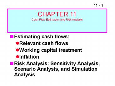 1CHAPTER 11 Cash Flow Estimation and Risk Analysis