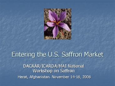 how well Afghan saffron is received. - One may set up a web site for Afghan saffron.