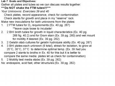 1Lab 7 Goals and Objectives Gather all plates