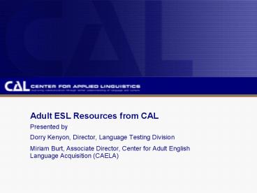 - To acquaint you with adult ESL resources from CAL