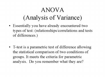 Levenes) you dont want to be significant. - However if it is significant then there is a
