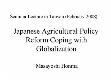 <Notice: Removed> Seminar Lecture in Taiwan February 2008 PowerPoint PPT Presentation