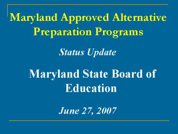 <Notice: Removed> Maryland Approved Alternative Preparation Programs PowerPoint PPT Presentation