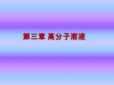 Title: Polymer Physics Chapter 3 Polymer Solutions