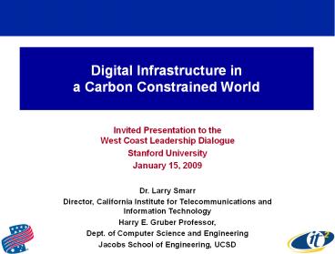 <Notice: Removed> Digital Infrastructure in a Carbon Constrained World PowerPoint PPT Presentation