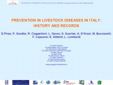 Title: PREVENTION IN LIVESTOCK DISEASES IN ITALY: