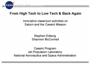 From High Tech to Low Tech PowerPoint PPT Presentation