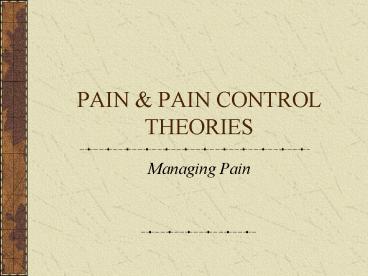 PAIN PAIN CONTROL THEORIES