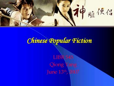 Chinese Popular Fiction PowerPoint PPT Presentation