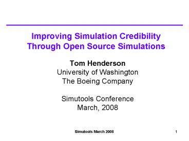 <Notice: Removed> Improving Simulation Credibility Through Open Source Simulations PowerPoint PPT Presentation