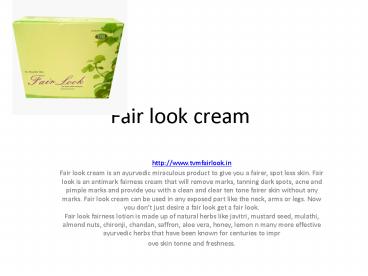 Fair look cream is an ayurvedic miraculous product to give you a fairer, spot less skin. Fair look is an antimark fairness cream that will remove marks, tanning dark spots, acne and pimple marks and provide you with a clean and clear ten tone fairer skin without any marks. Fair look cream can be used in any exposed part like the neck, arms or legs. Now you don't just desire a fair look get a fair look.Fair look fairness lotion is made up of natural herbs like javitri, mustard seed, mulathi, almond nuts, chironji, chandan, saffron, aloe vera, honey, lemon n many more effective ayurvedic herbs that have been known for centuries to impr
