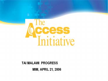 TAI MALAWI PROGRESS PowerPoint PPT Presentation