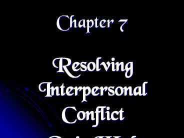 Resolving Interpersonal Conflict PowerPoint PPT Presentation
