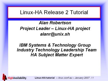<Notice: Removed> Linux-HA Release 2 Tutorial PowerPoint PPT Presentation