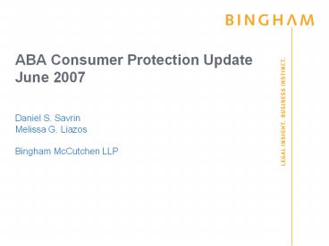 <Notice: Removed> ABA Consumer Protection Update June 2007 PowerPoint PPT Presentation