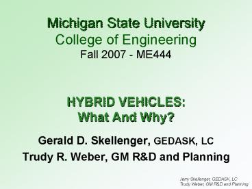 1HYBRID VEHICLESWhat And Why?