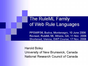 1The RuleML Familyof Web Rule LanguagesPPSWR06,