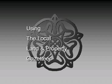Using The Local Land Property Gazetteer