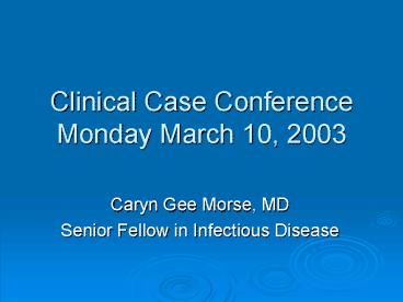 Title: Clinical Case Conference Monday March 10, 2003