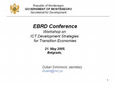 Republic of Montenegro GOVERNMENT OF MONTENEGRO