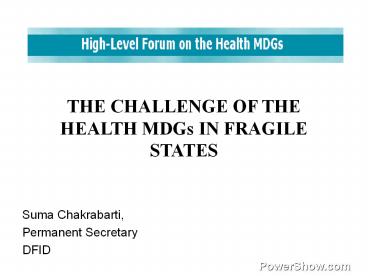 THE CHALLENGE OF THE HEALTH MDGs IN FRAGILE STATES PowerPoint PPT Presentation