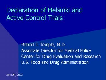 <Notice: Removed> Declaration of Helsinki and Active Control Trials PowerPoint PPT Presentation