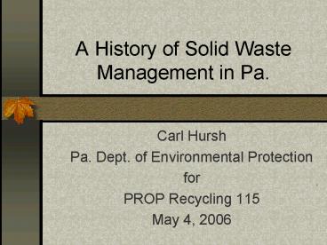 A History of Solid Waste Management in Pa' PowerPoint PPT Presentation
