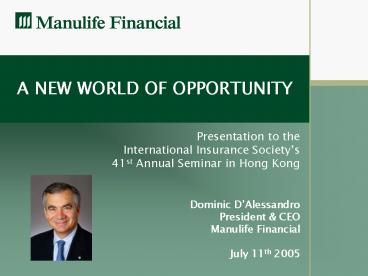 Dominic DAlessandro President CEO Manulife