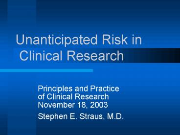 Title: Unanticipated Risk in Clinical Research