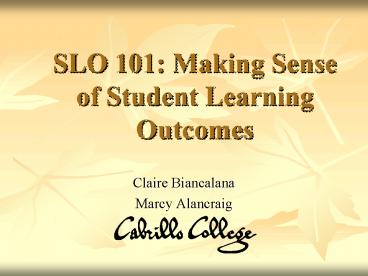 SLO 101: Making Sense of Student Learning Outcomes PowerPoint PPT Presentation