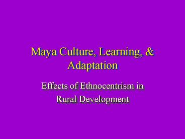 Maya Culture, Learning, PowerPoint PPT Presentation