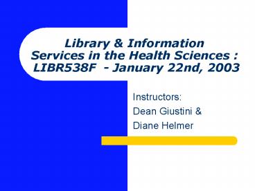 Sciences LIBR538F - January 22nd, 2003