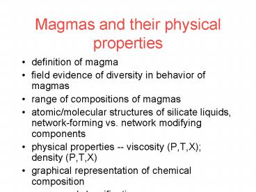 Title: Magmas and their physical properties