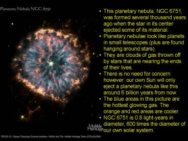 - NGC 6751 is 0.8 light-years in diameter, 600