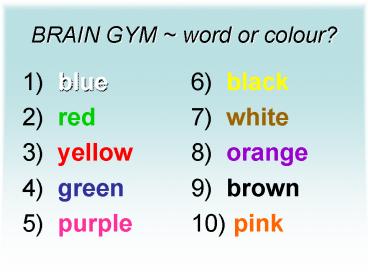1BRAIN GYM word or colour?