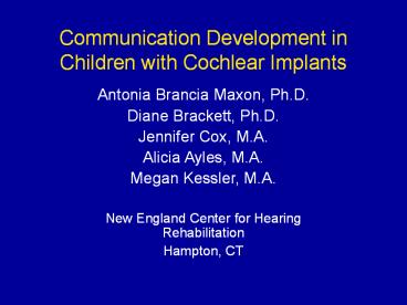<Notice: Removed> Communication Development in Children with Cochlear Implants PowerPoint PPT Presentation