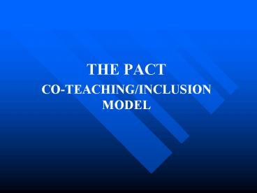 - What is The PACT Co-Teaching/Inclusion Model?