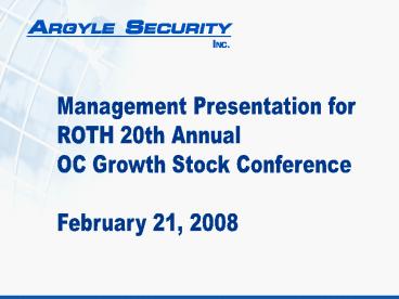 Commercial markets. - In 2007, Argyle Security acquired ISI Security
