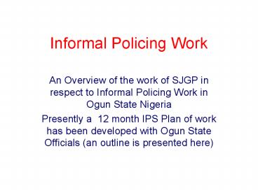 Informal Policing Work PowerPoint PPT Presentation