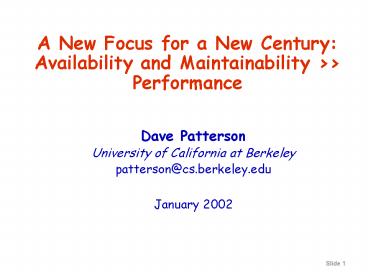 1A New Focus for a New Century Availability and