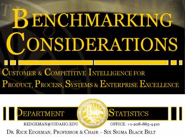 DR. RICK EDGEMAN, PROFESSOR CHAIR SIX SIGMA