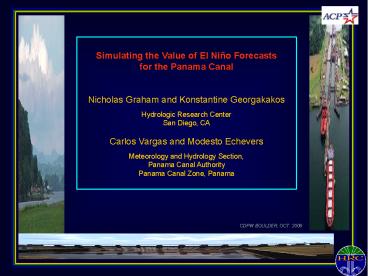 and water supply for the Canal. - El Niño variability is somewhat predictable at