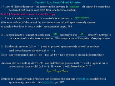 spontaneous). See table 16.5 pg. 797 - ?G ?H - T?S ?Suniv - ?G / T