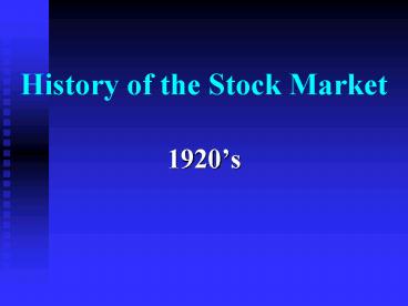 History of the Stock Market PowerPoint PPT Presentation