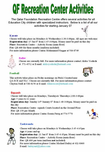 Fee QR 250 per term (Term 2 runs from Jan 28th