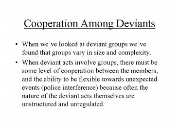 Cooperation Among Deviants PowerPoint PPT Presentation
