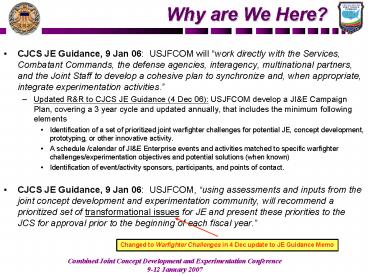 - CJCS JE Guidance, 9 Jan 06 USJFCOM will work