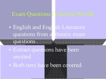 <Notice: Removed> Exam Questions Opening Worlds PowerPoint PPT Presentation