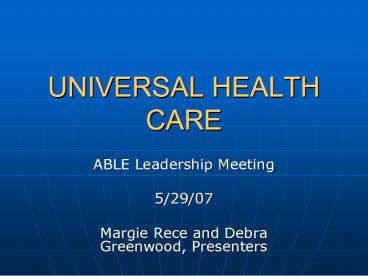 <Notice: Removed> UNIVERSAL HEALTH CARE PowerPoint PPT Presentation