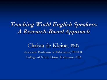 Title: Teaching World English Speakers: A ResearchBased Approach